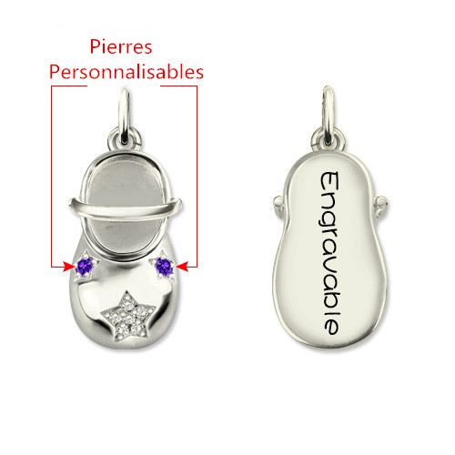 Collier Chaussure de Bébé-Pierres de Naissance et Gravure-Argent