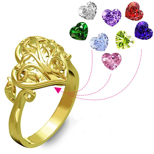 Cette bague Cage Coeur d’arbre généalogique, avec la couleur en Platiné Plaqué, Plaqué Or et Plaqué Or Rosé, meilleur cadeau pour votre mère ou un de vos proches peut personnaliser la couleur des pierres dans la cage en forme de cœur d'amour. Choisissez les pierre que vous préférez, et créez un bijou unique.