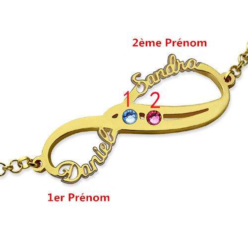 2. Bracelet Infini-2 Prénoms et Pierres de Naissance-Plaqué Or
