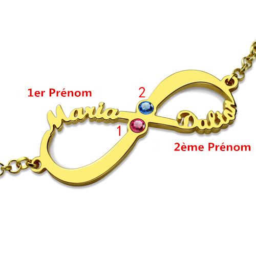 2. Bracelet Infini-2 Prénoms et Pierres de Naissance-Plaqué Or