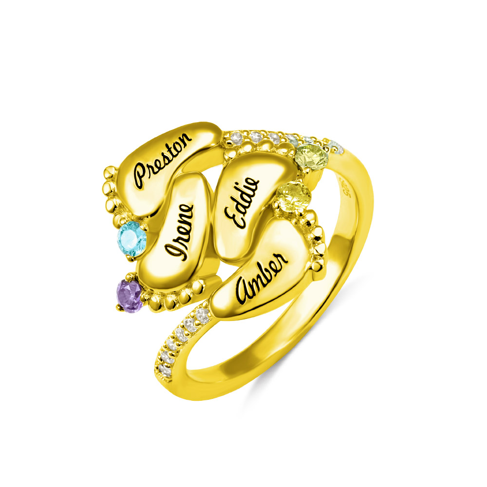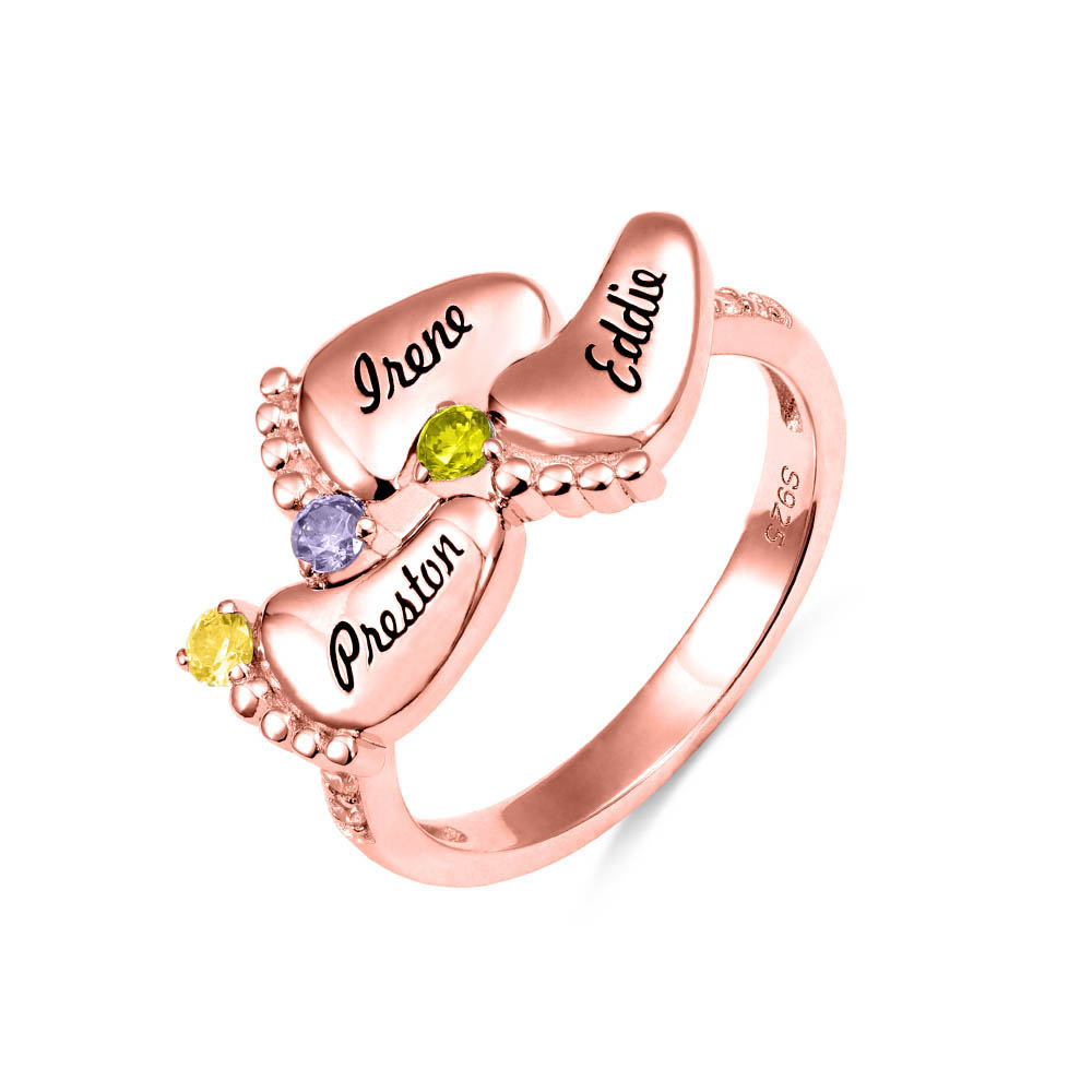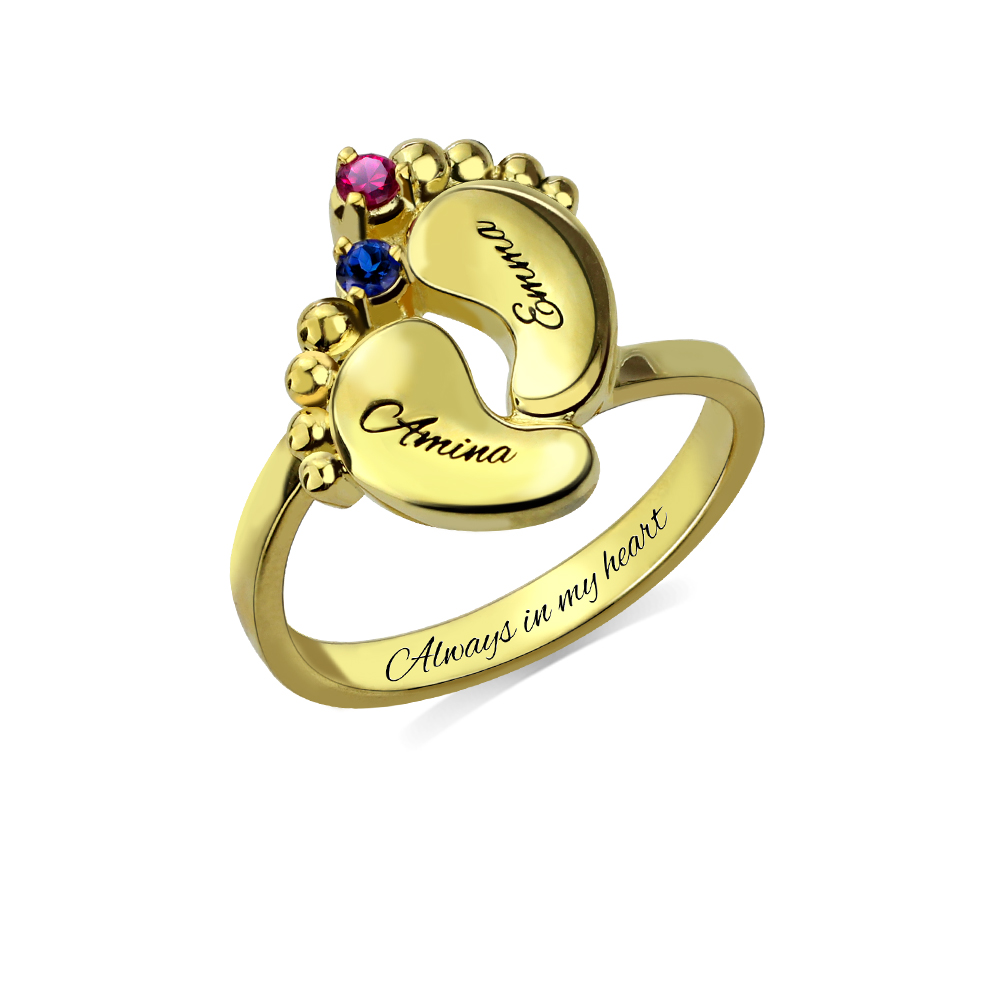Bague Pieds de Bébé-2 à 4 Pierres de Naissance et Gravure