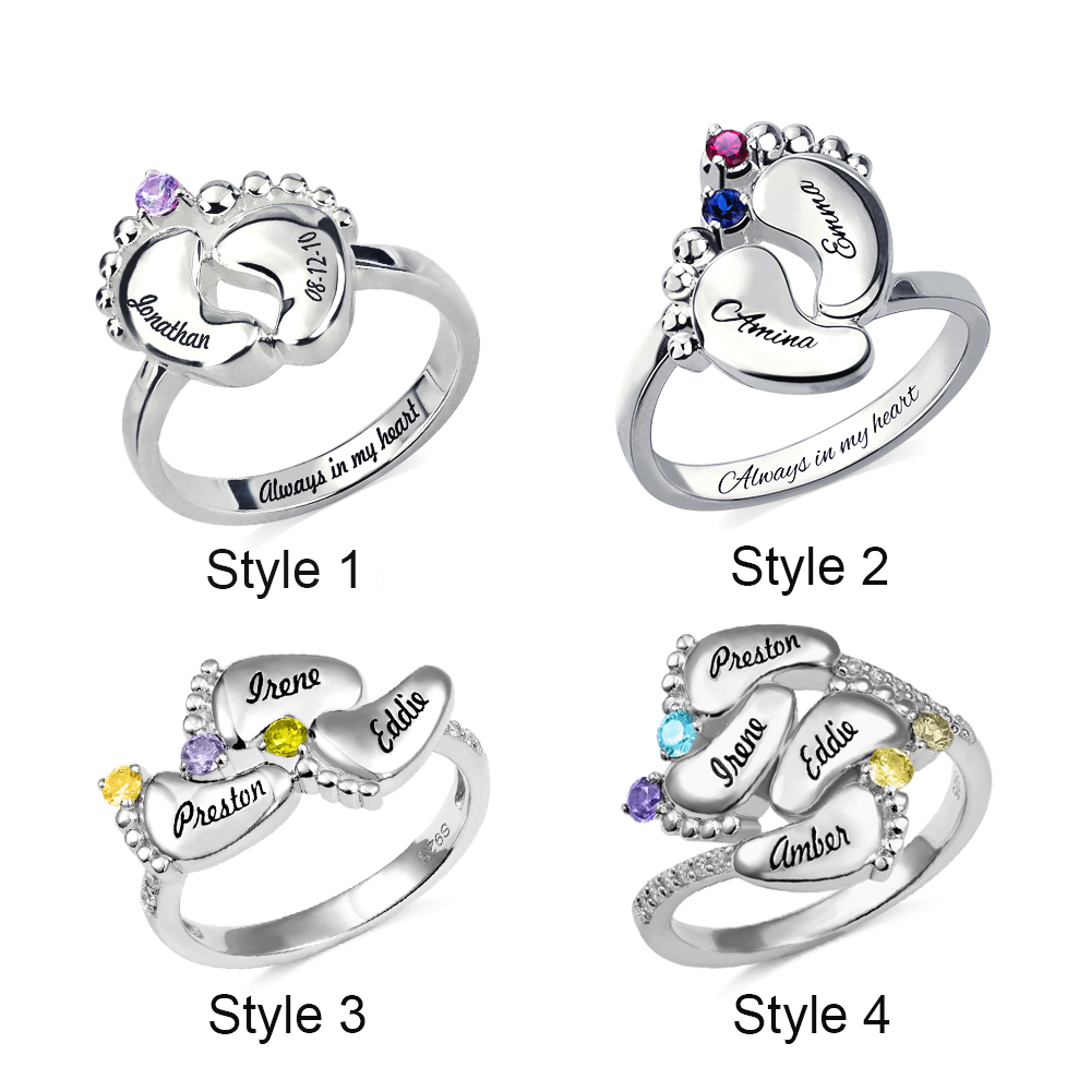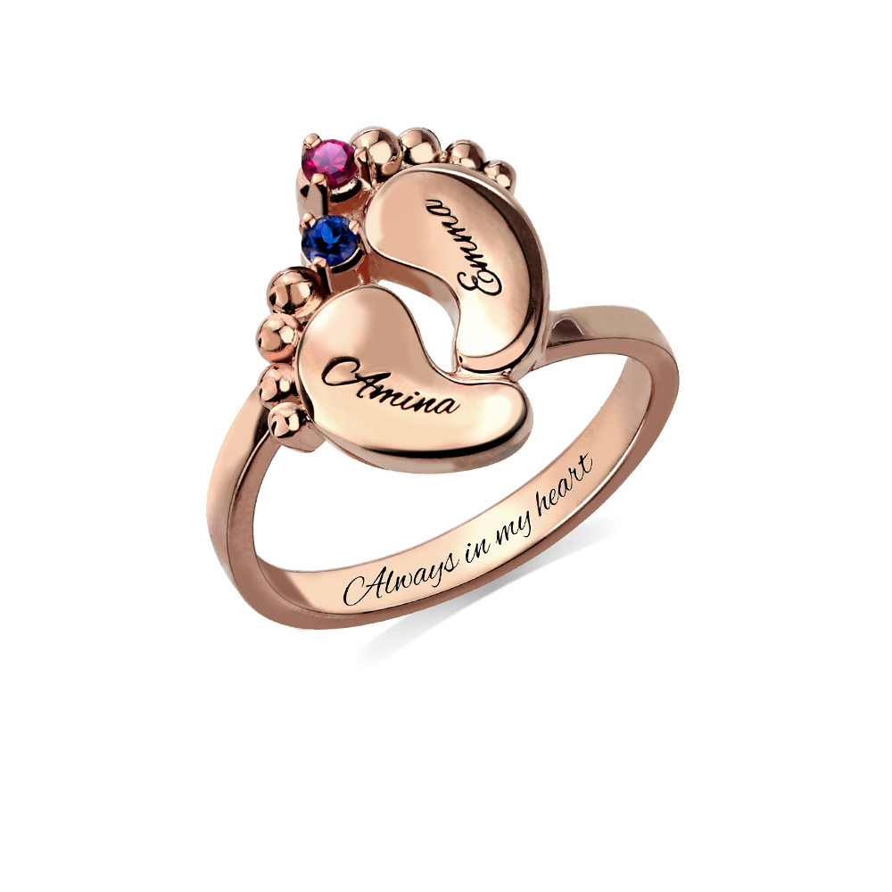 2. Bague Pieds de Bébé-2 à 4 Pierres de Naissance et Gravure