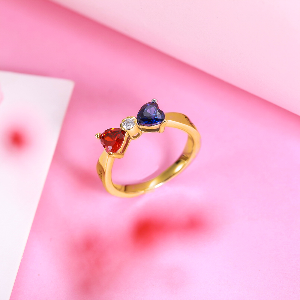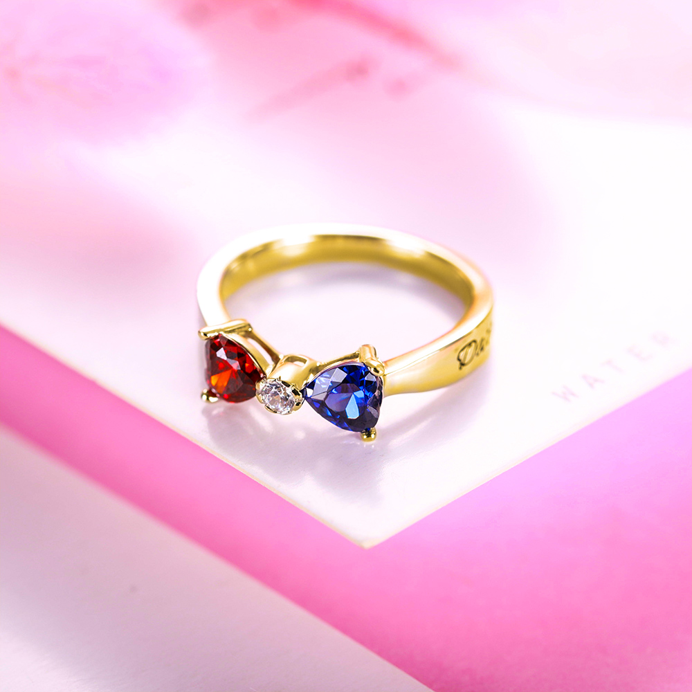2. Bague Nœud à Deux Boucles-Pierres de Niassance et Gravure-Plaqué Or