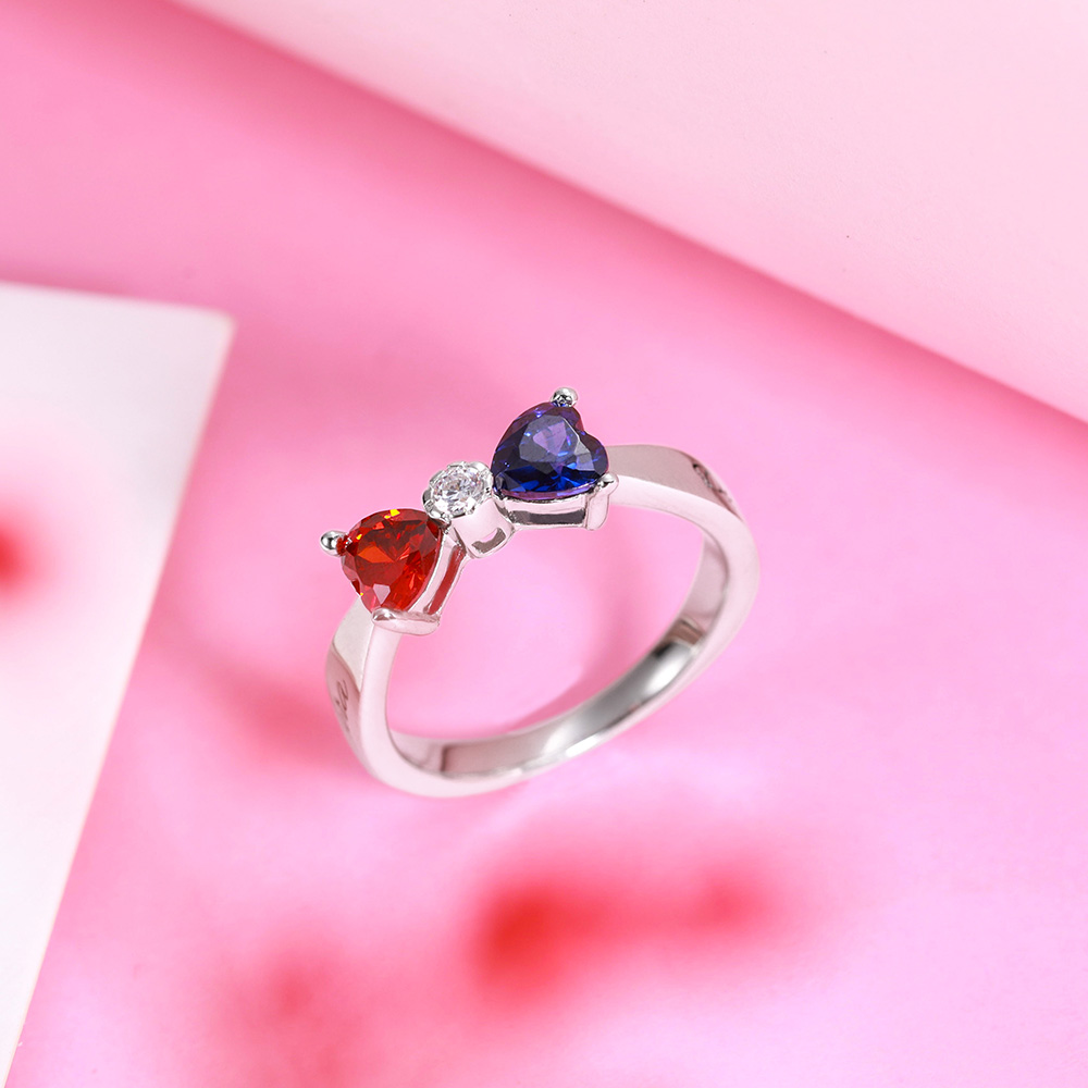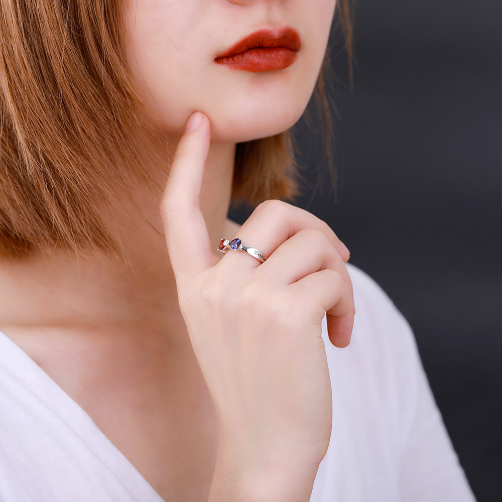 2. Bague personnalisée en argent sterling avec pierre de naissance et nœud pour couple