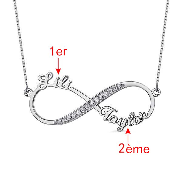 Meilleure façon pour représenter votre amour éternel, ce collier infini peut personnaiser deux prénoms ou mots de votre choix. Vous pouvez graver les prénoms de vos meilleurs amis, ceux de vos enfants ou tout ce que vous pouvez imaginer. Ce collier prénom infini personnalisé sera le parfait cadeau pour votre amoureuse , vos amies ou votre mère.