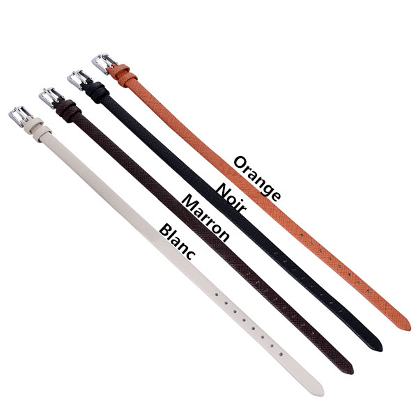 Ce bracelet avec la ceinture fine en cuir et une barrette, sur laquelle nous pouvons graver des mots spéciaux pour vous. C'est une bonne idée à porter au quotidien quand vous êtes en jean. Cet accessoire est également convenable d'offrir comme un cadeau à vos amies, vos soeurs ou votre mère.