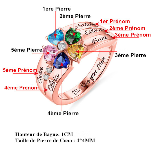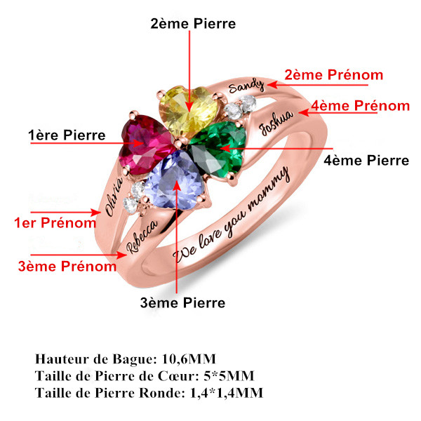 Que ces bijou sont magnifiques, brillantes et spéciales. Notre série de bagues avec pierres de naissance sont de haute qualité, sur les quelles nous gravons des prénoms correspondant à chaque pierre, mais aussi une petite phrase au maximum 20 caractères pour l'intérieur d'anneau. En plus, vous pouvez choisir la couleur de chaque pierre. Cadeau vraiment idéal pour mères, grands-mères, soeurs ou amies. Alors dépêchez-vous. Commandez maintenant!