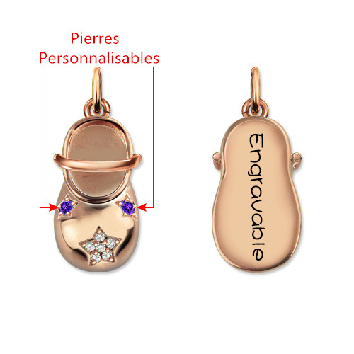 Collier Chaussure de Bébé-Pierres de Naissance et Gravure-Plaqué Or Rose