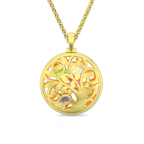 Collier Cage Arbre de Vie-9 Pierres de Naissance-Plaqué Or