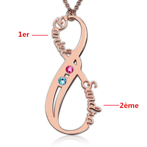 2. Collier Infini-2 Prénoms et Pierres de Naissance-Plaqué Or Rose